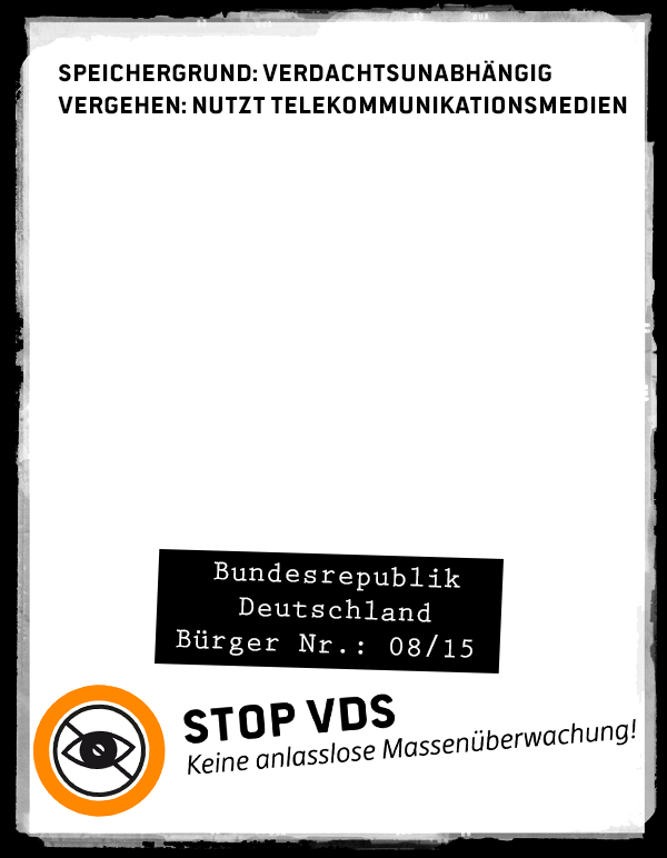 Jeder, der seiner Ablehnung einer Vorratsdatenspeicherung ein Gesicht geben will, kann sich an dieser Aktion beteiligen.
